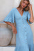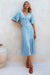Simple yet charming Donna midi dress screams elegance and femininity. Handcrafted from soft breathable rayon into button down silhouette with smock waist on the back and fitted detailing on the front it cascades into a tiered skirt and is adorned with tortoise buttons and butterfly sleeves.
