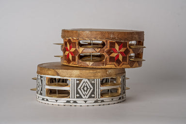 Fulfilled by our friends at Verve CultureThis unique percussion instrument is handmade in Morocco with goat skin and decorated with Henna. The goat...