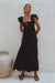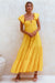 Our Nymph maxi dress has a romantic, tiered silhouette adorned with elasticated ruffled sleeves that enhance the feminine fit. Made from a light and airy crinkle linen into 4 tier maxi style, it's framed with slim self-ties at the neckline. Perfect style to take on your next Summer vacation.