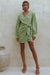 Handcrafted from lightweight breezy crinkle linen Ti Amo mini dress is designed in adjustable wrap silhouette. Framed with V-neckline and billowy sleeves it is deal as well for vacation as it is for the city.