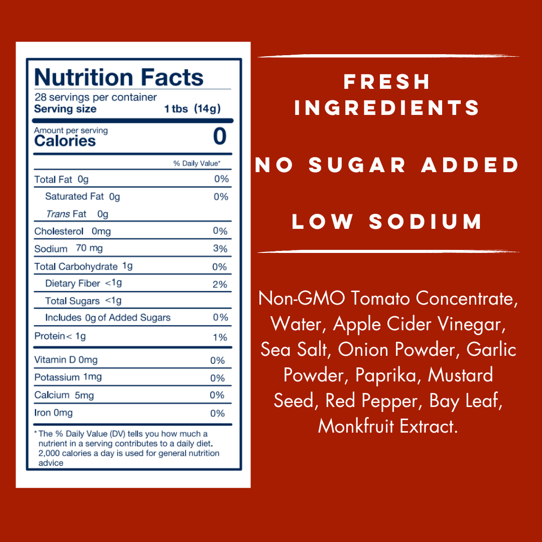Yo Mama's Classic Ketchup is handcrafted with Tomatoes, Spices, and Monk Fruit. A delicious upgrade to the American Classic, Yo Mama's Ketchup is free from added sugars, contains no high fructose corn syrup and is Keto + Paleo Certified. Enjoy this delicious masterpiece on your Sweet Potato Fries, Hot Dogs, and Burgers.
